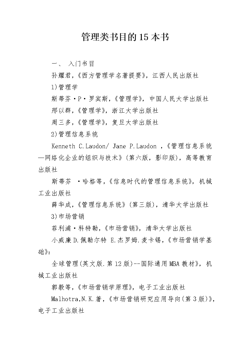 管理类书目的15本书