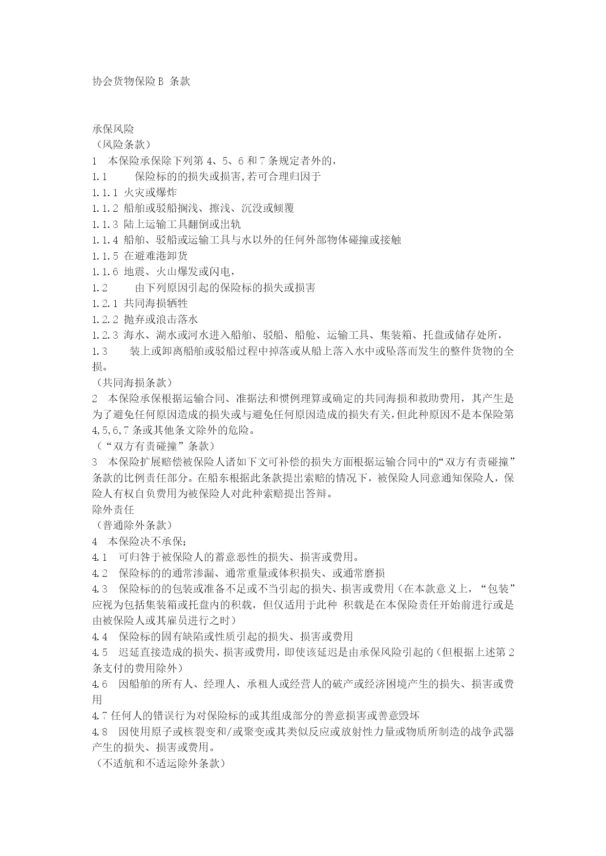 协会货色保险B 条目
