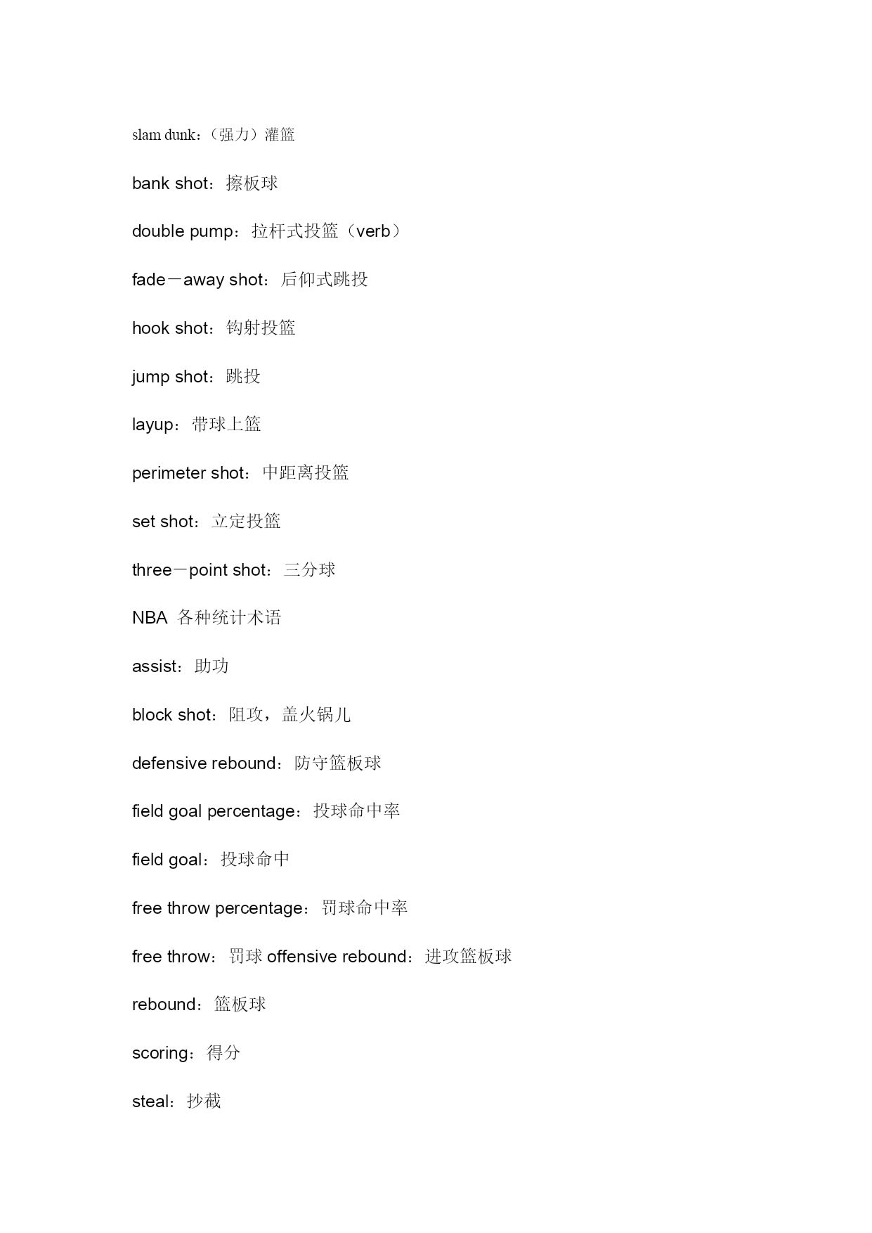 nba常用词汇