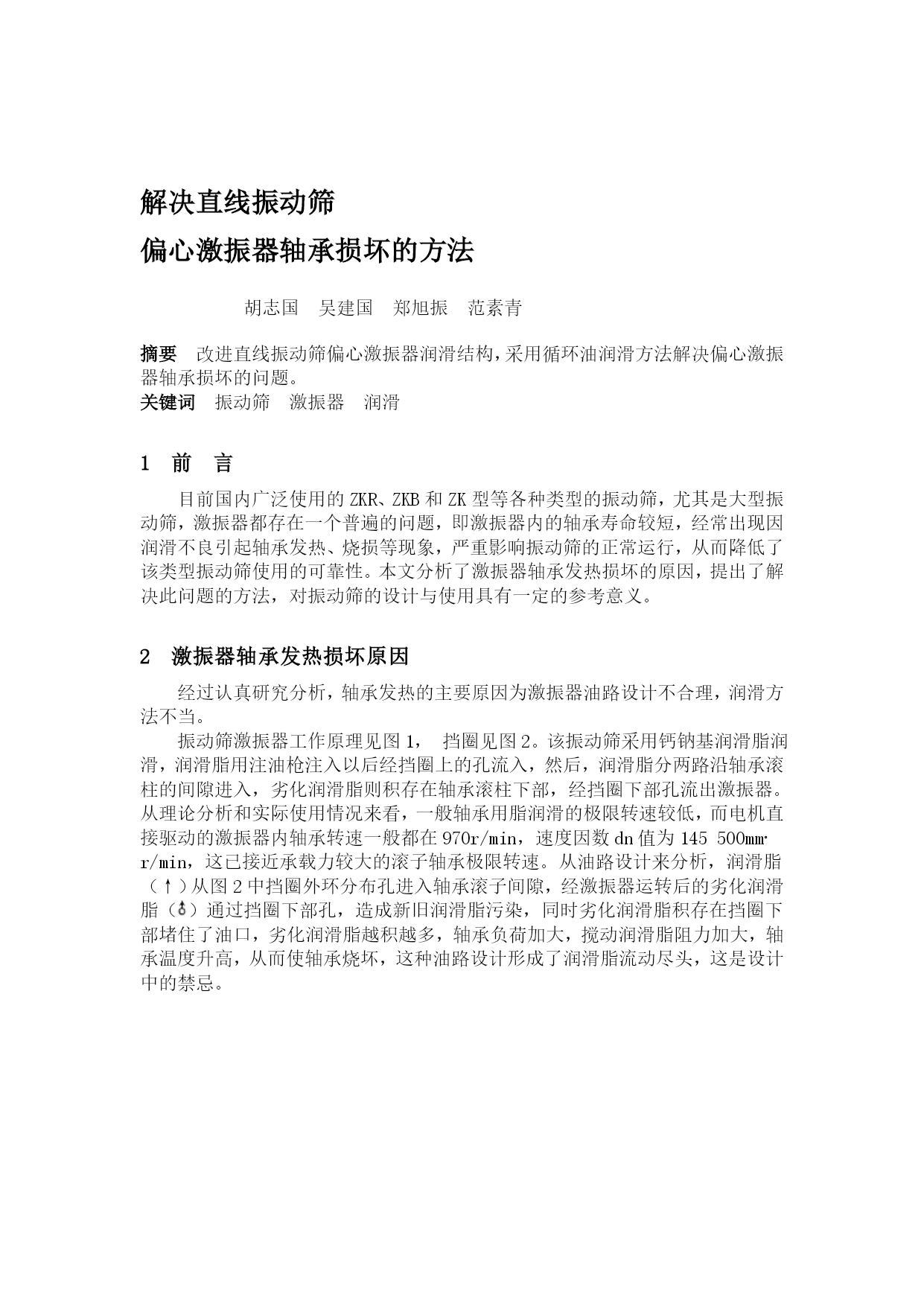 处理直线振动筛偏爱激振器轴承破坏的方法