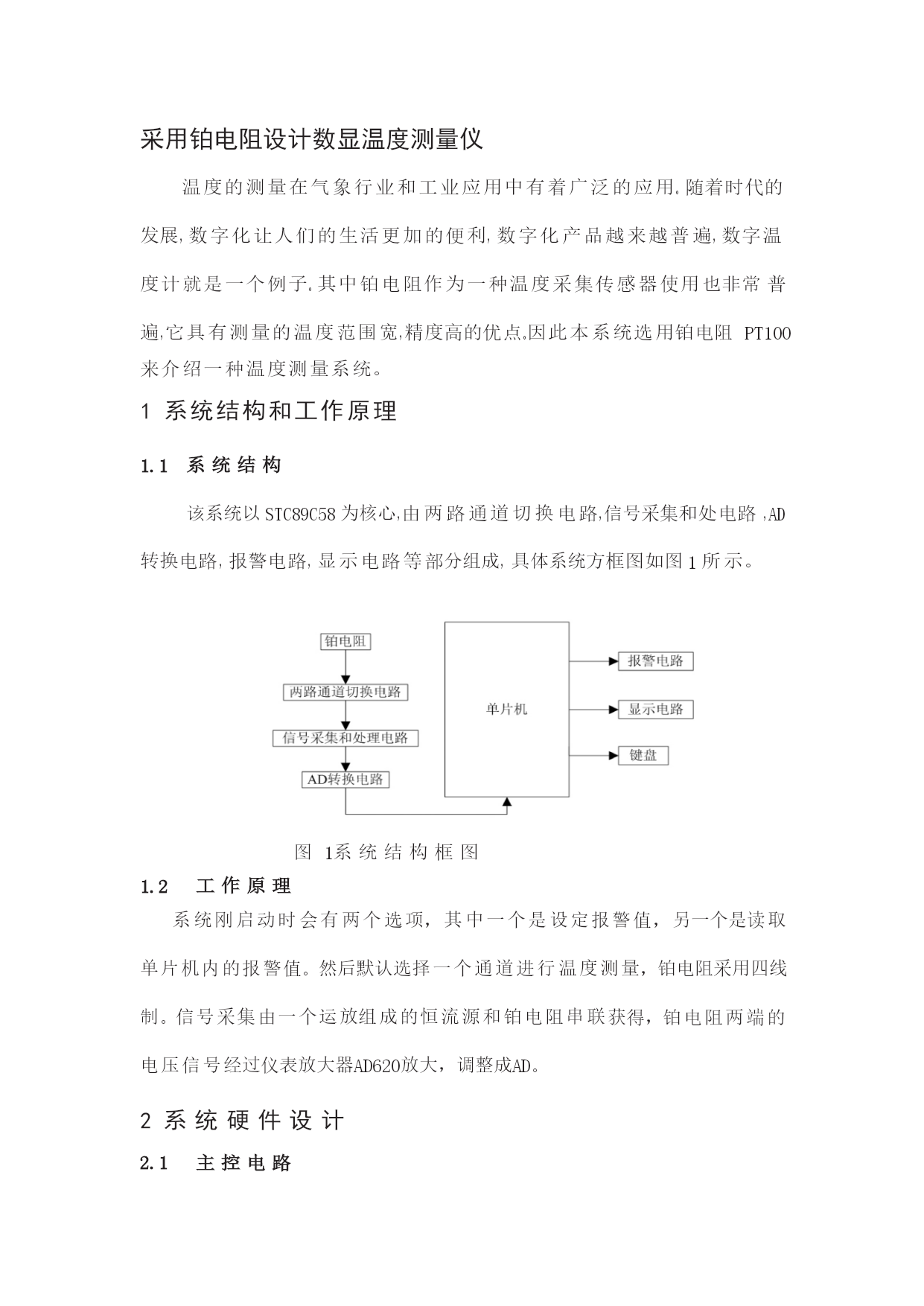 采纳铂电阻设计数显温度测量仪