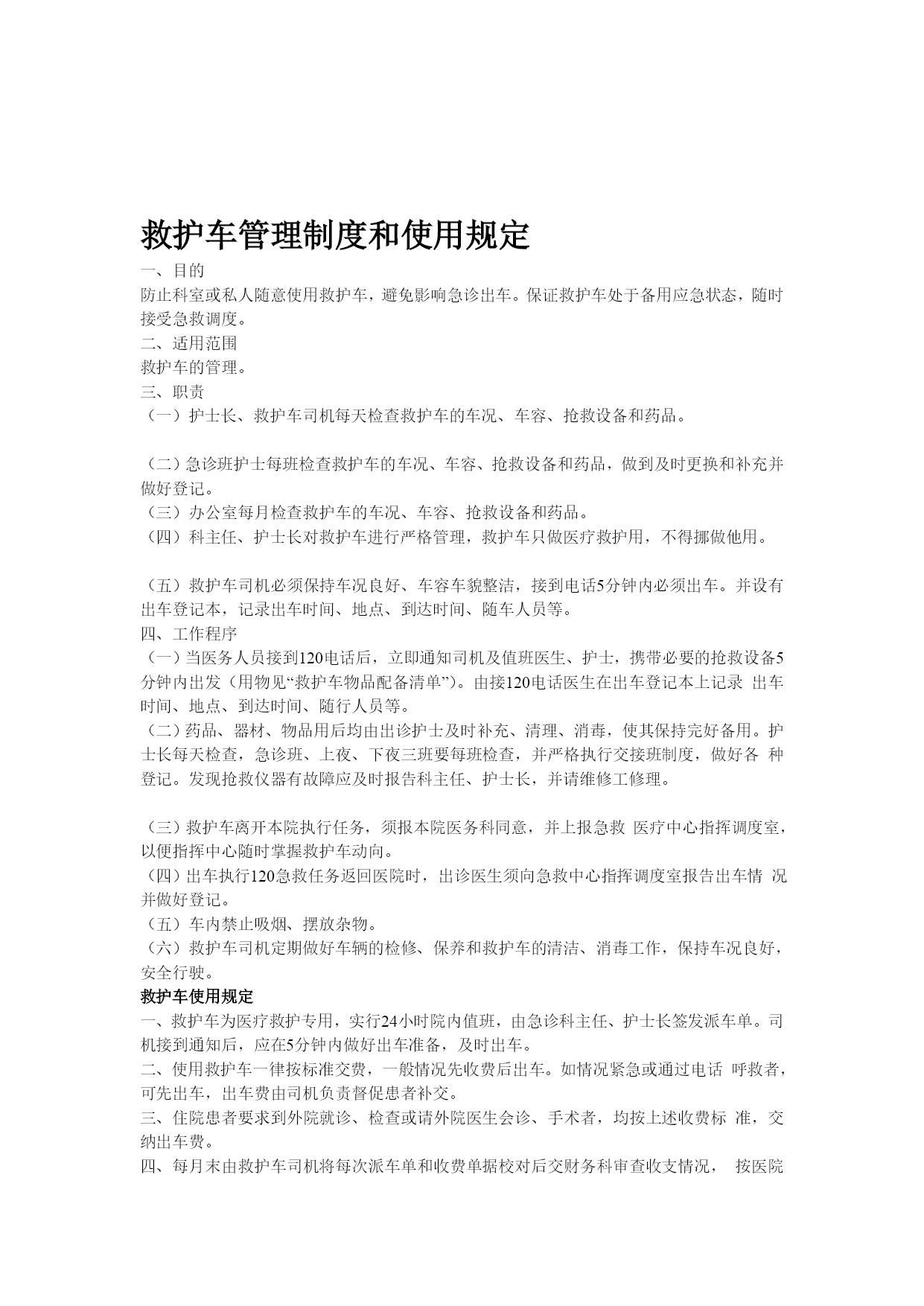 抢救车治理轨制和应用规定