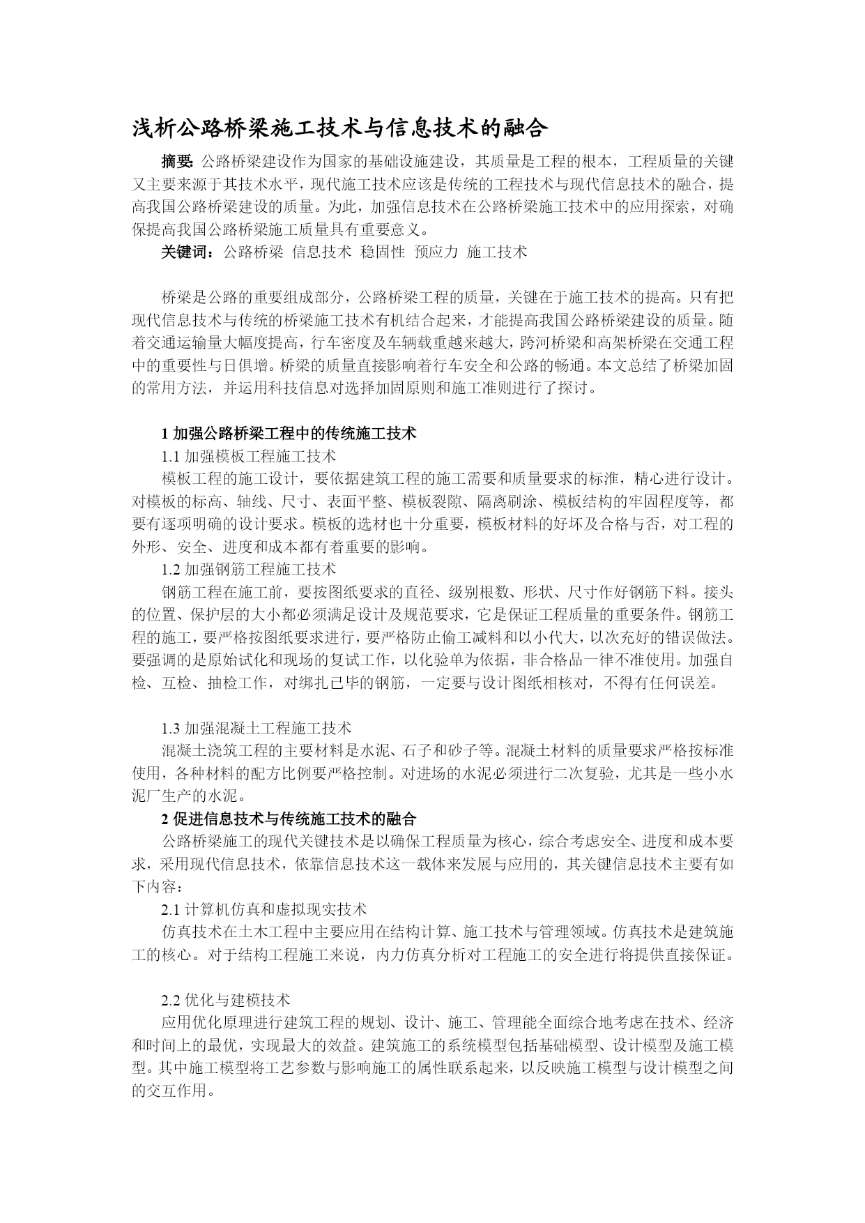 浅析公路桥梁施工技巧与信息技巧的融合