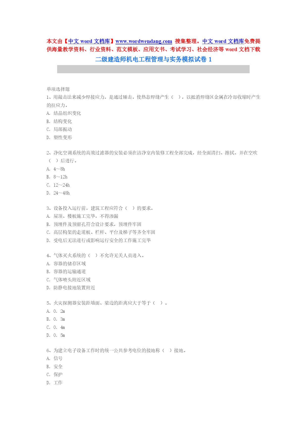 二级建筑师机电工程治理与实务模拟试卷1