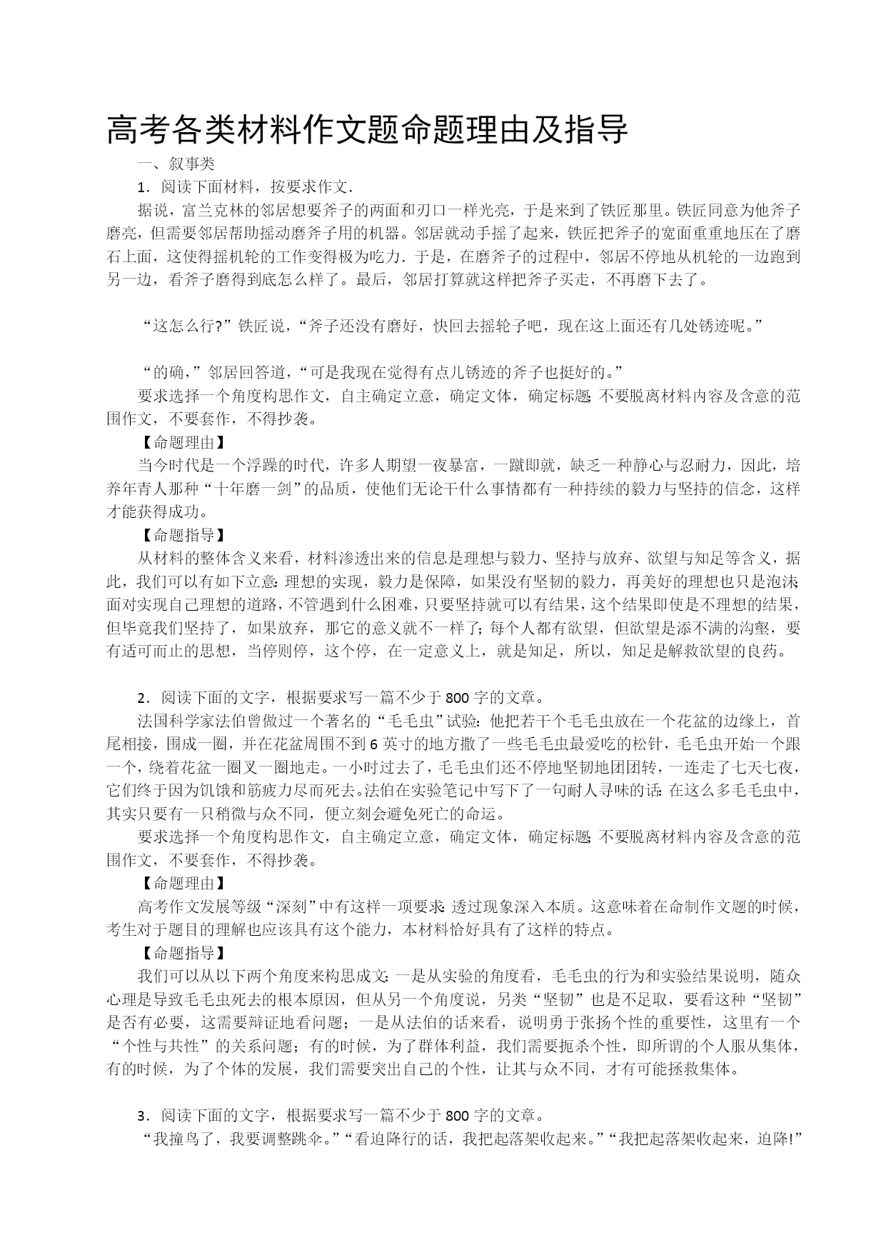 高考各类资料作文题命题来由及引诱