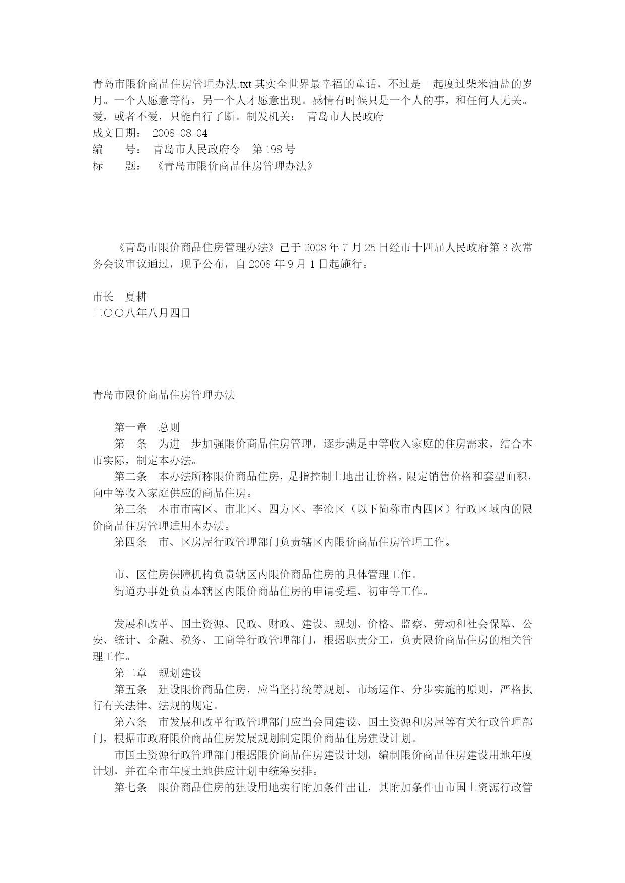 青岛市限价商品住房治理办法20011