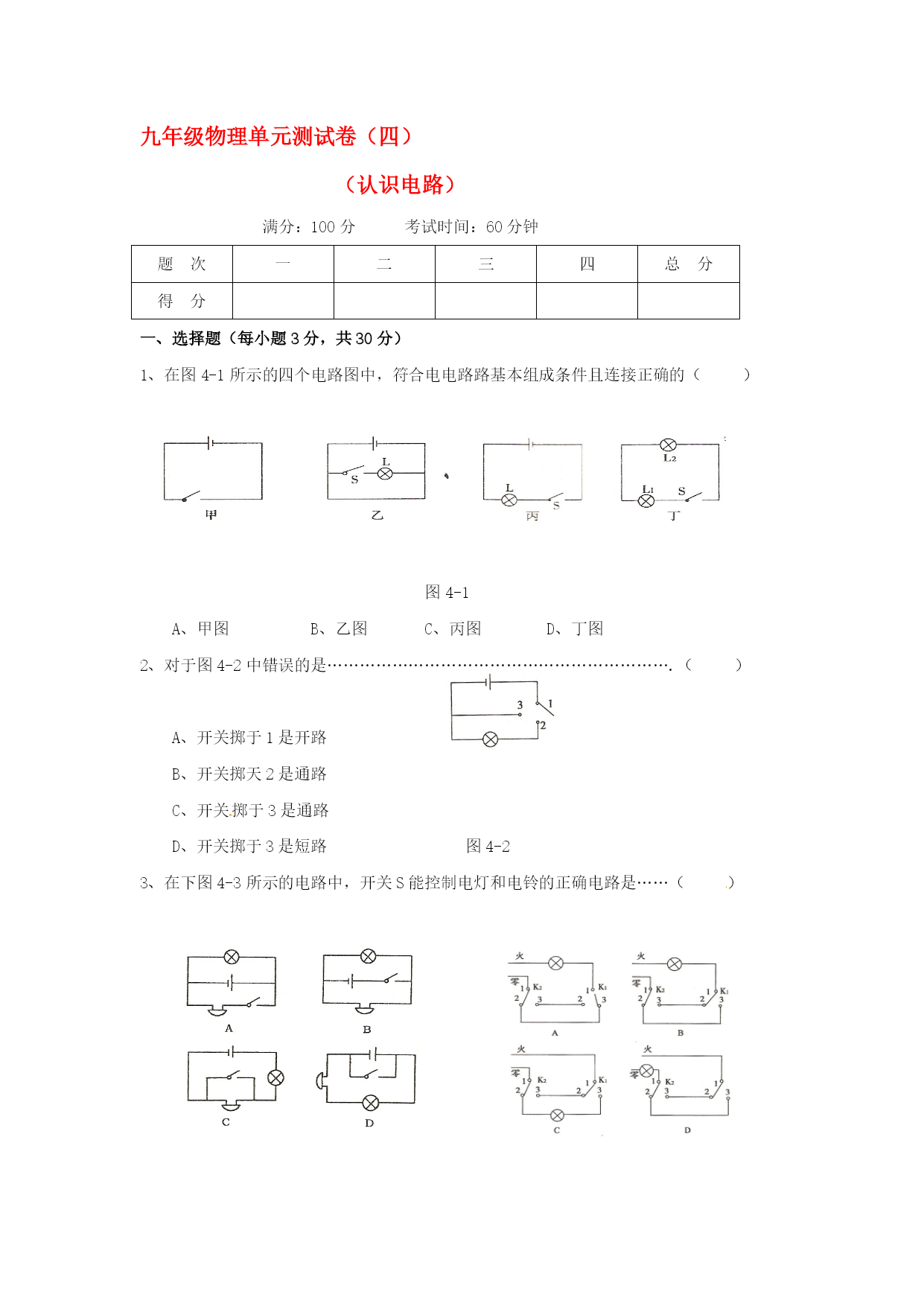 九年级物理上册 第四章熟悉电路单位测试卷 教科版