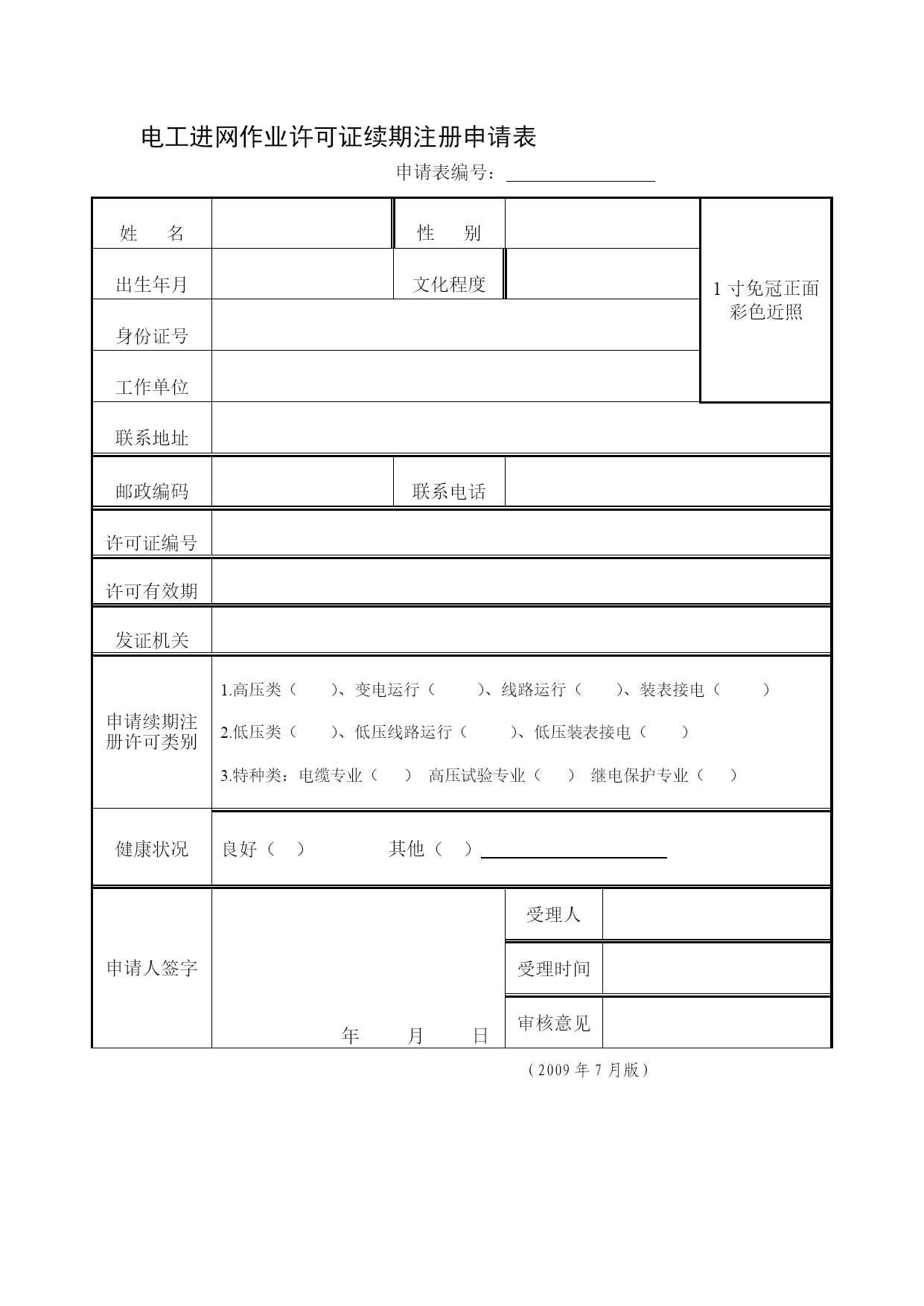 电工进网功课同意证续期注册请求表