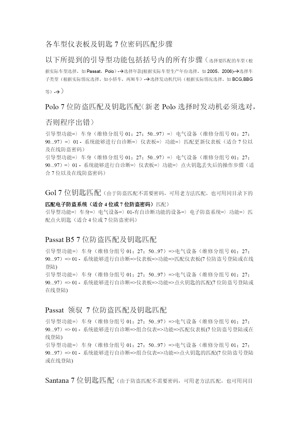 各车型仪表板及钥匙7位暗码婚配步调