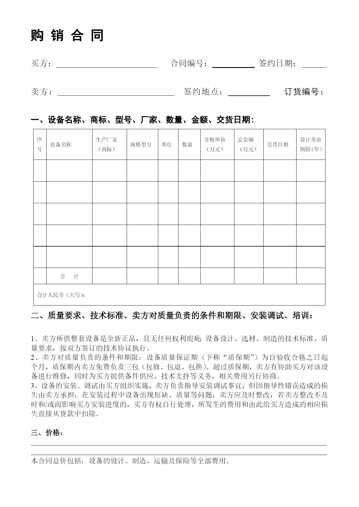 机械装备生意合同