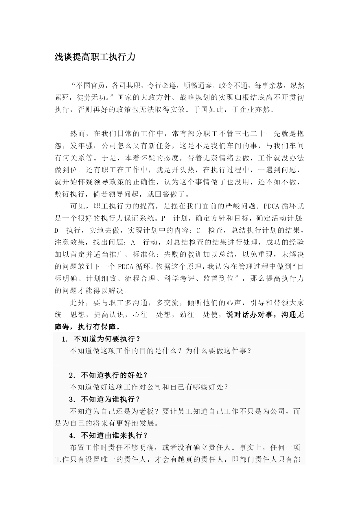 浅谈提高职工履行力