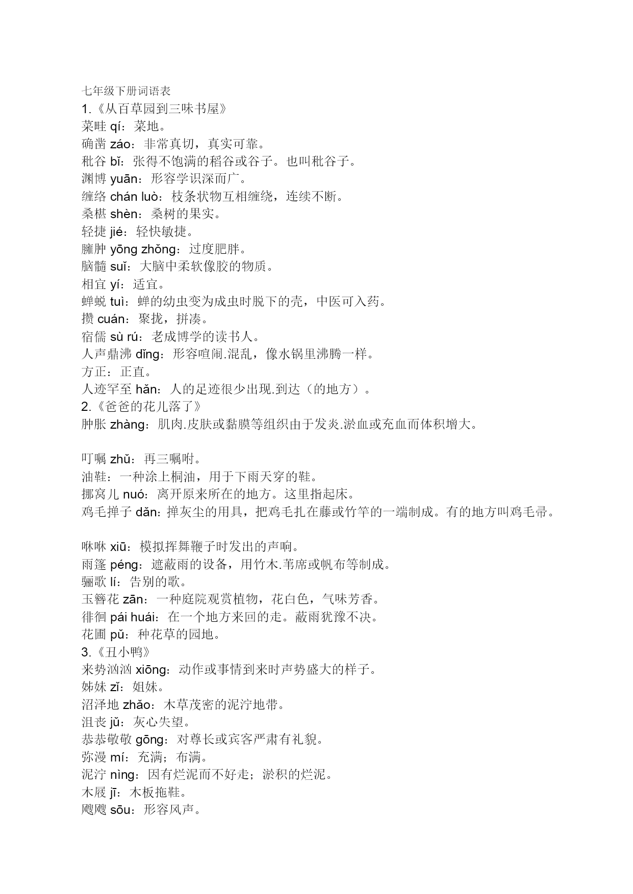 七年级下册词语表