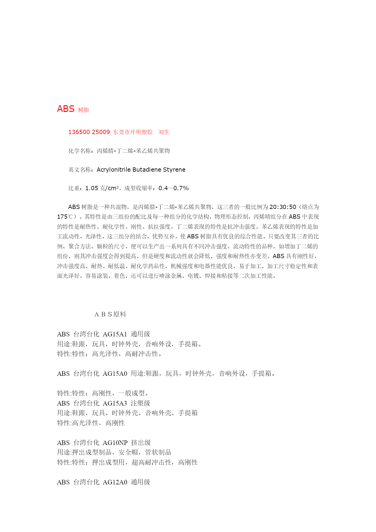 ABS 树脂 塑胶原料