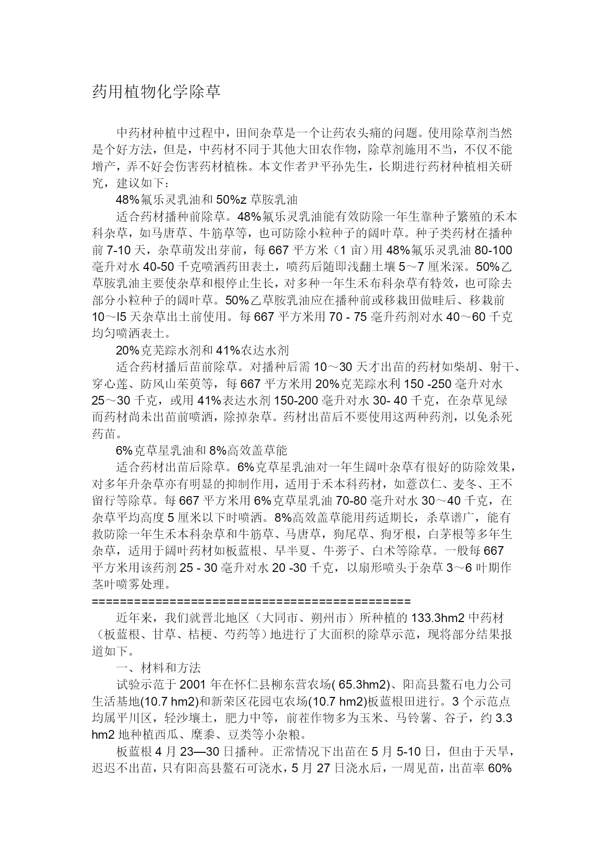 药用植物化学除草