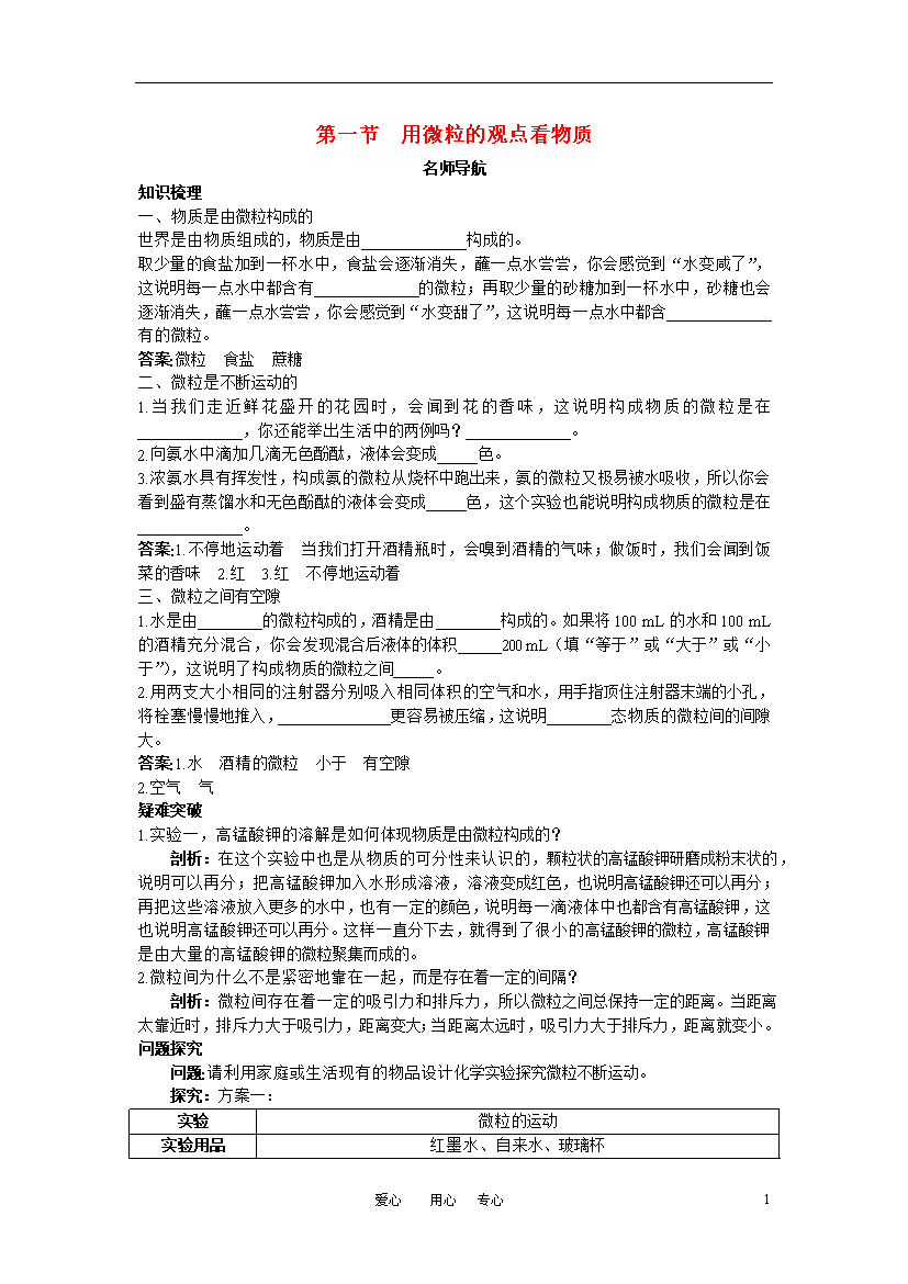 教案-全国-2010_九年级化学 第三单元第一节用微粒的观点看物质名师导航 沪教版