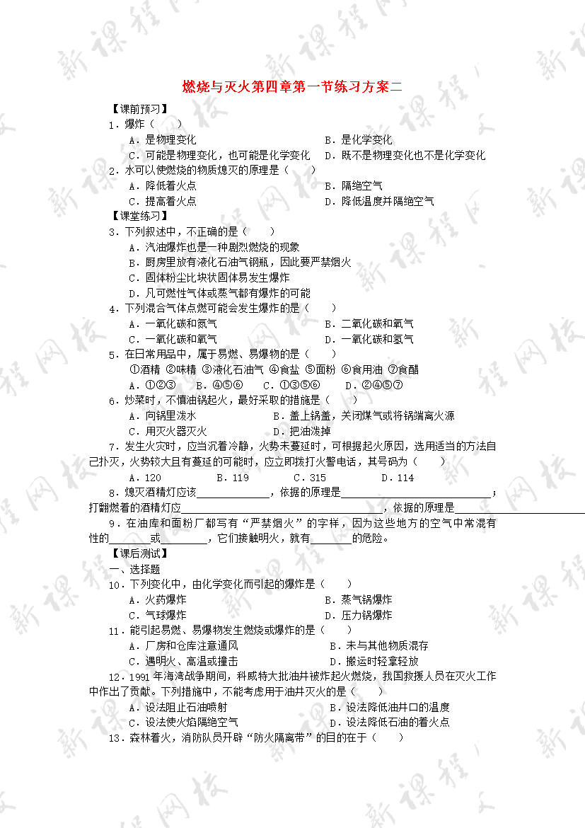 试题-全国-2006_燃烧与灭火第四章第一节练习方案二