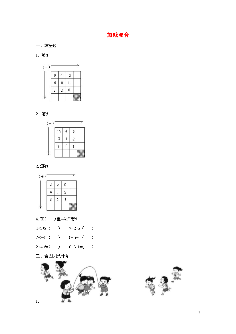 试题-全国-2019_一年级数学上册 第5单元 6-10的认识和加减法《加减混合》作业2 新人教版