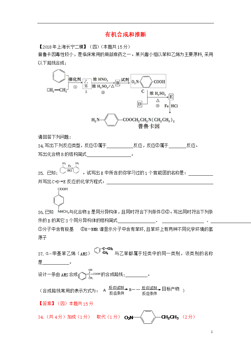 试题-上海-2018_上海市各区2018年中考化学二模试题分类汇编 有机合成和推断试题